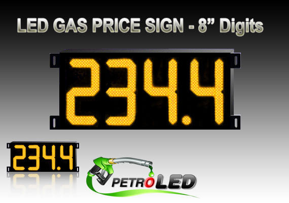 Gas Price LED Sign (Digital) 8" Amber (Yellow) with 4 Large Digits - 5 Year Warranty