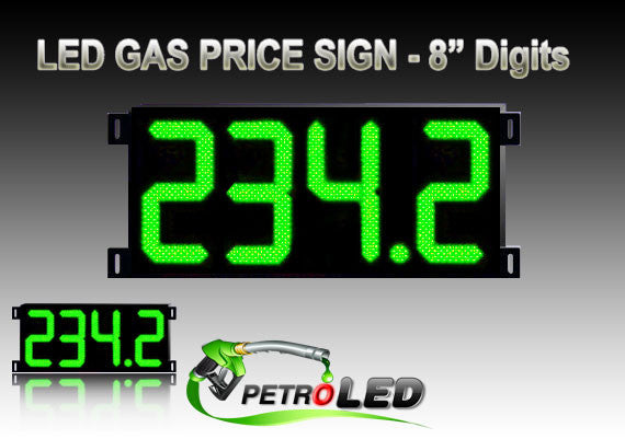 Gas Price LED Sign (Digital) 8" Green with 4 Large Digits - 5 Year Warranty